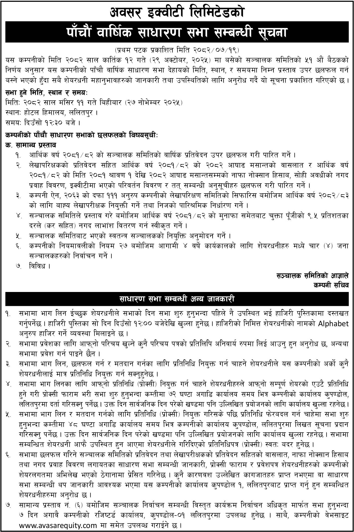 Nepal’s first domestic Private Equity Fund managed by Avasar Equity Limited...